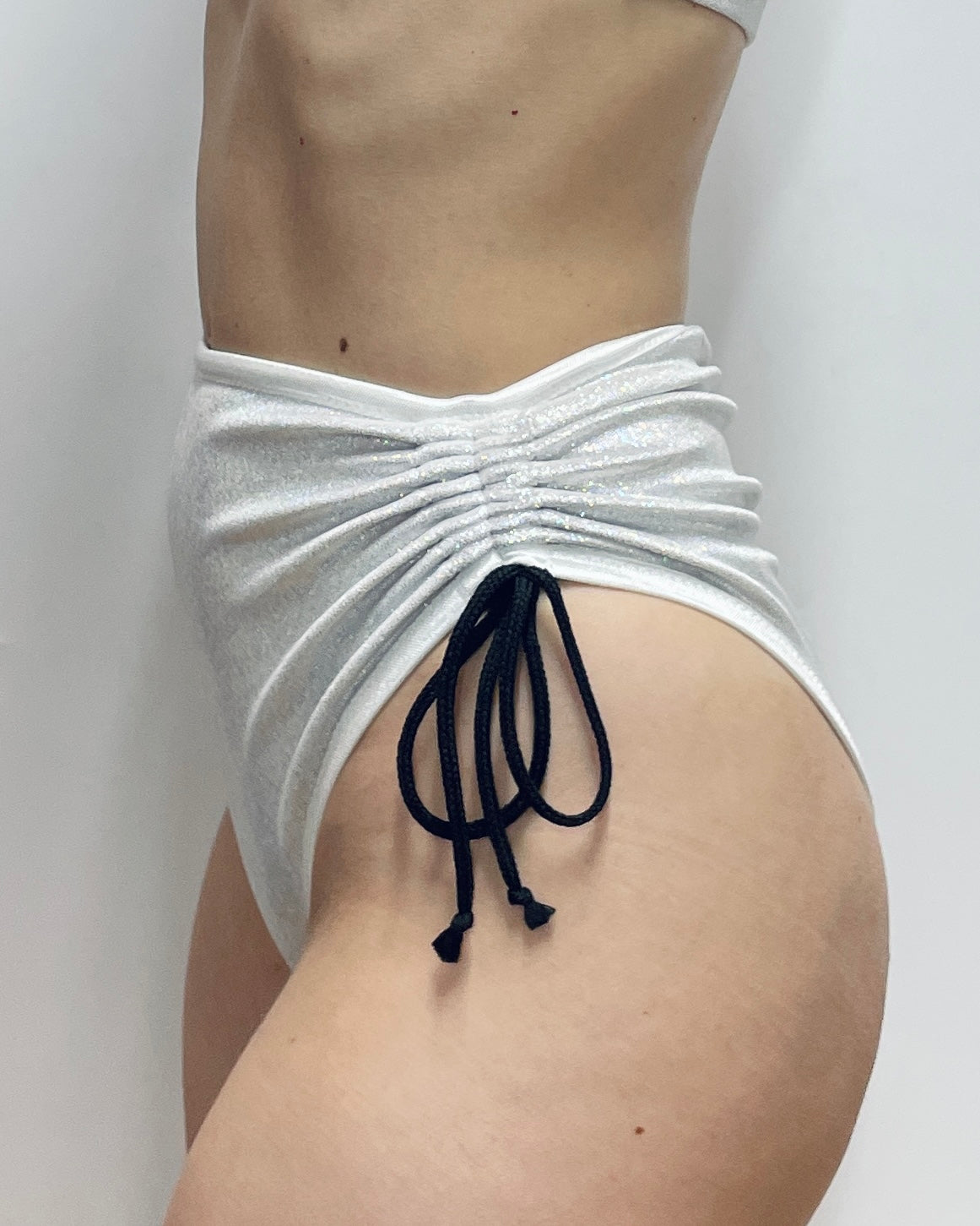 Shimmery white velvet set with bat motives on bust area. Cheeky shorts can be gathered on the sides. This top does not have bra inserts option! Top and shorts sold separately!
